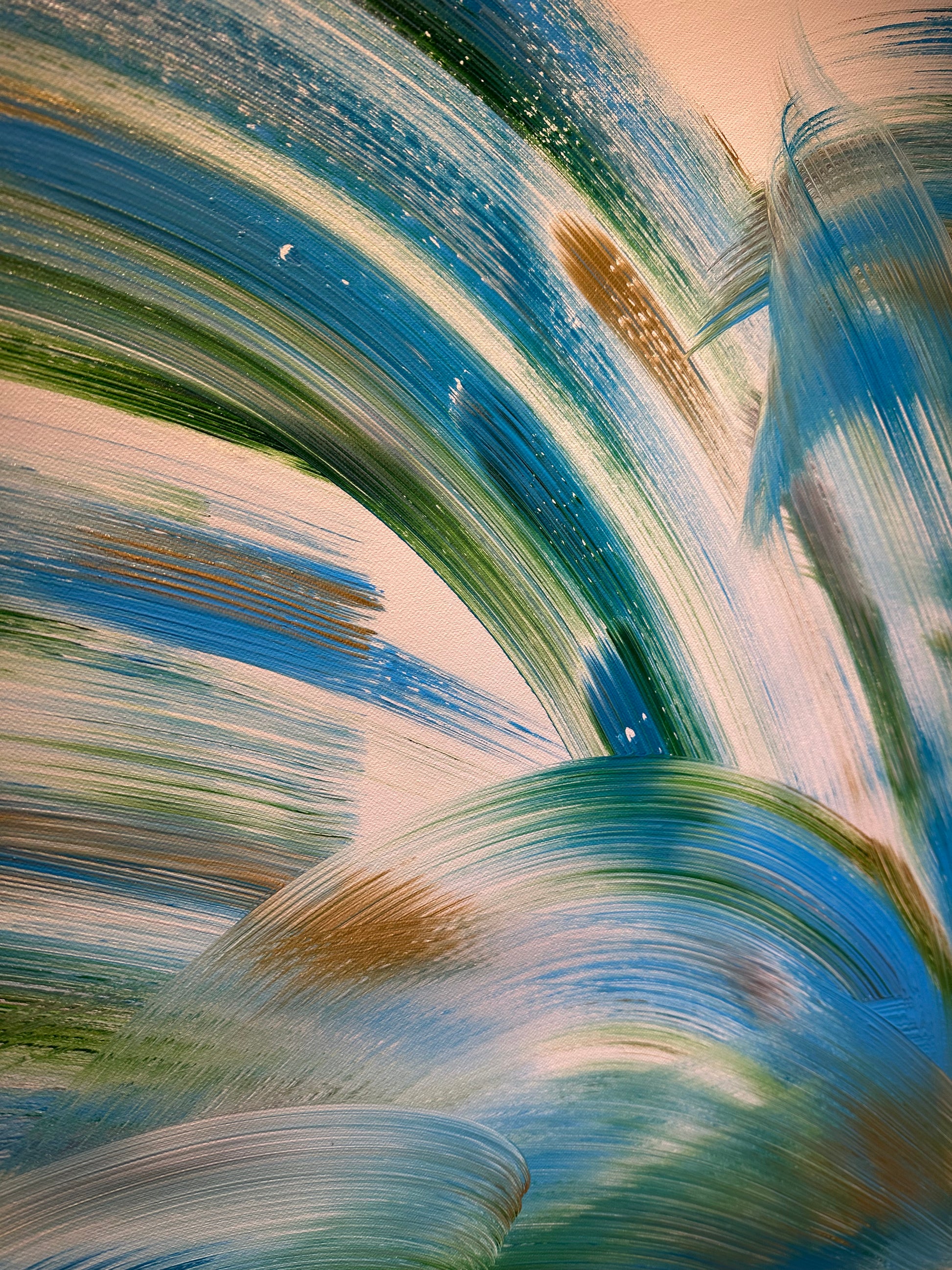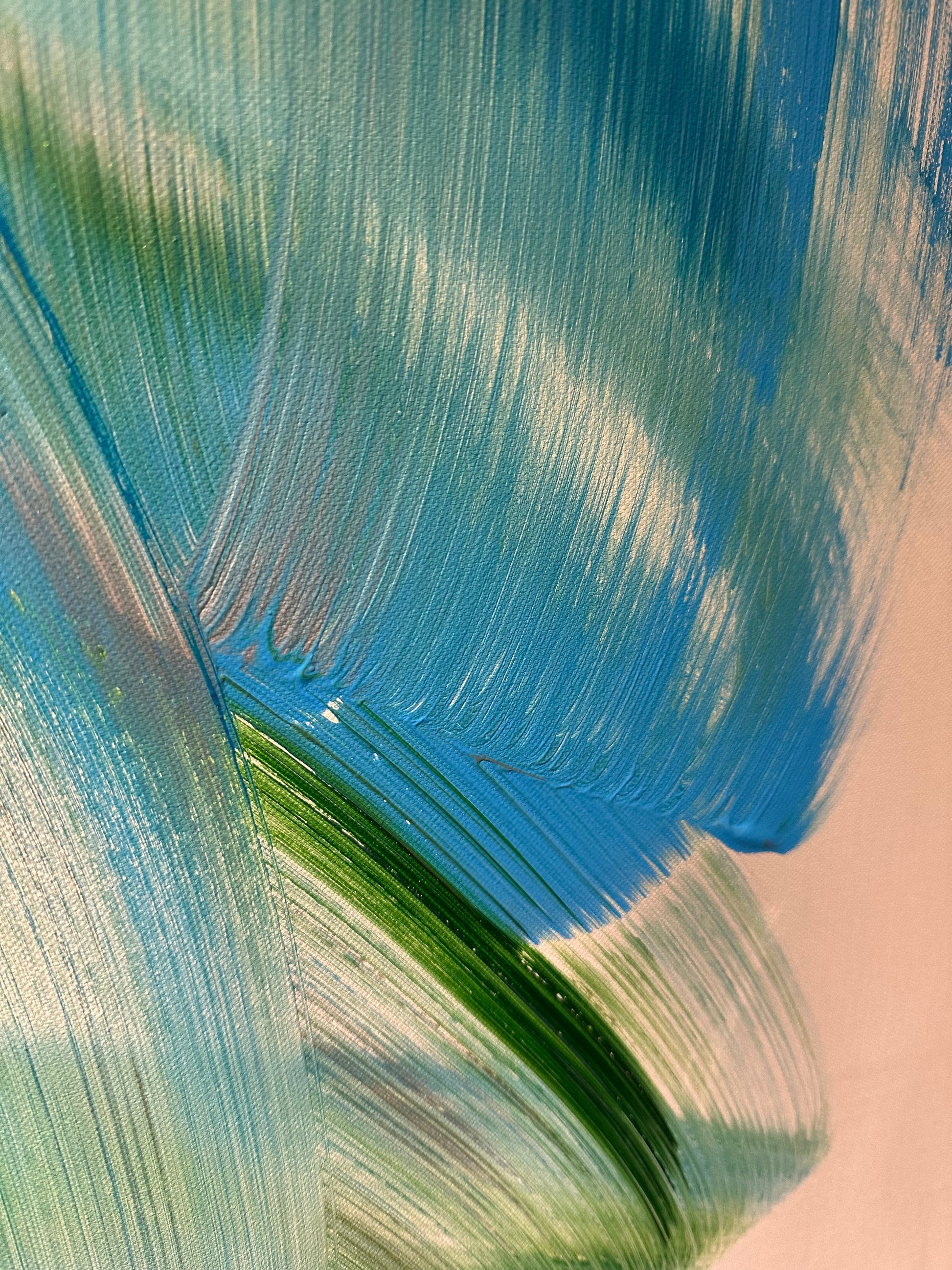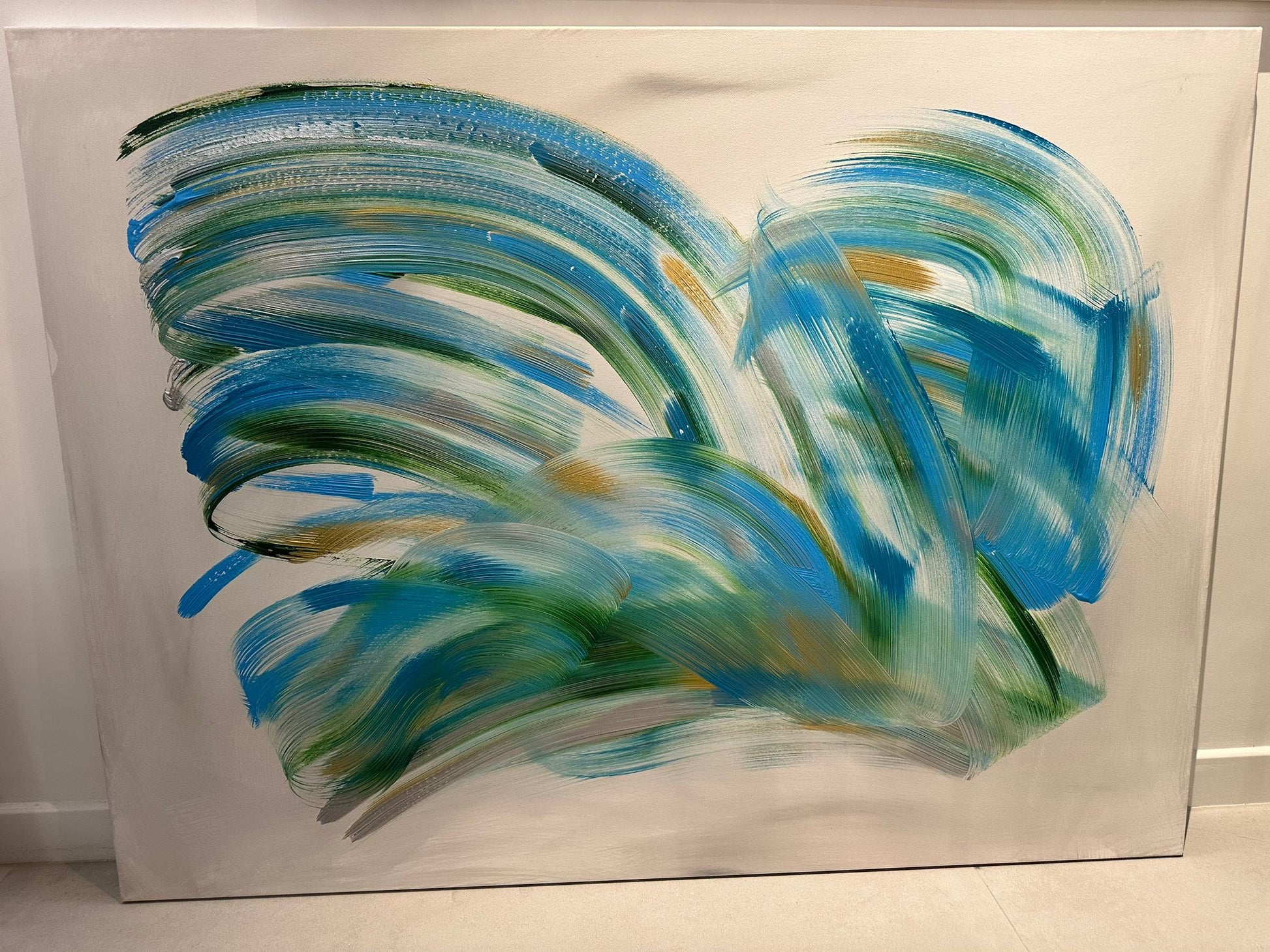 Ce tableau évoque la fluidité et la sérénité d’une brise marine caressant les vagues. Les teintes apaisantes de bleu et de vert se mêlent avec délicatesse, créant une impression de mouvement et de liberté. Légèrement abstraite, l’œuvre invite à un voyage introspectif, rappelant la mer, le ciel et l’immensité. Une pièce idéale pour insuffler une atmosphère calme et vivifiante dans n’importe quel espace.