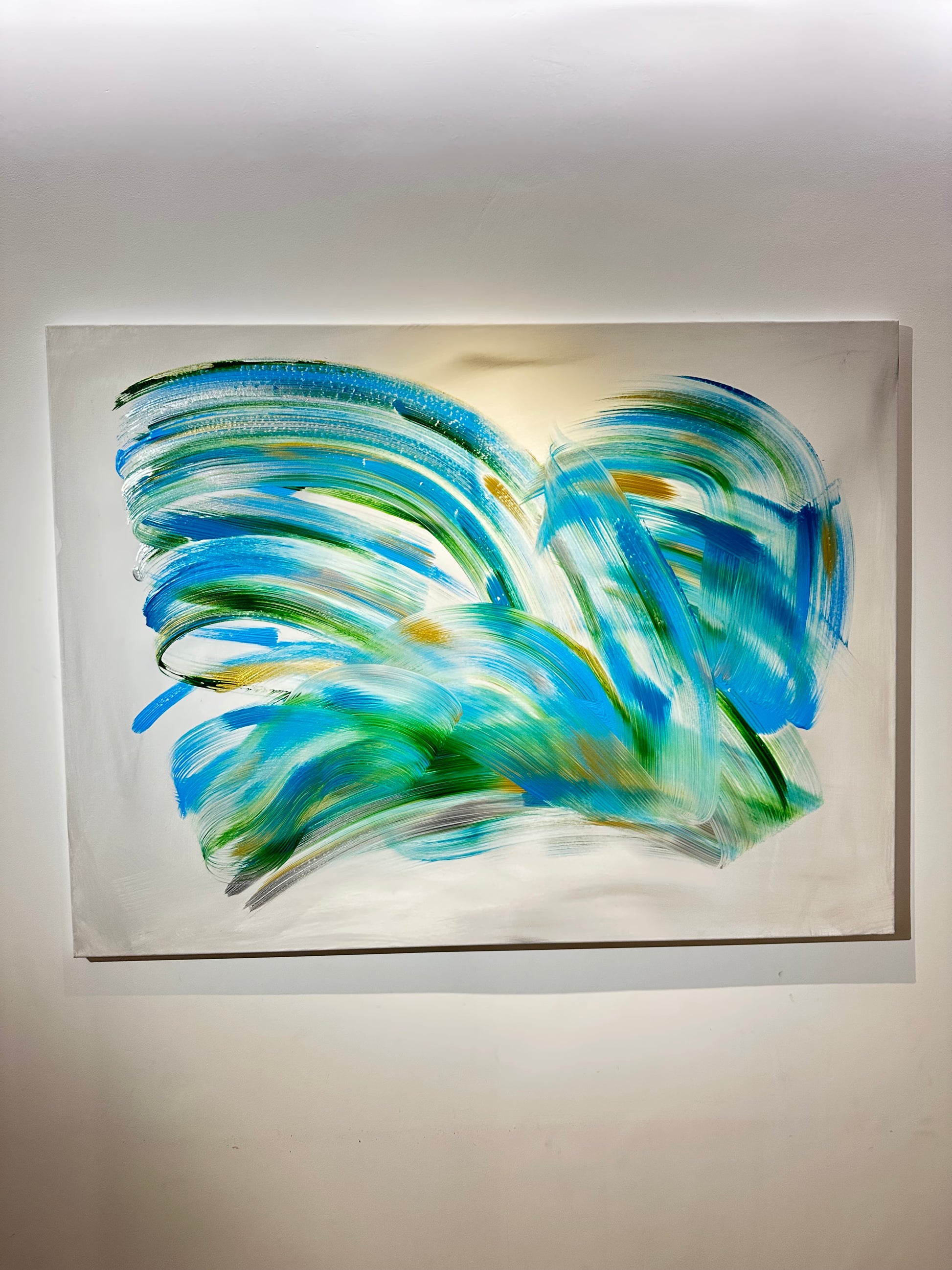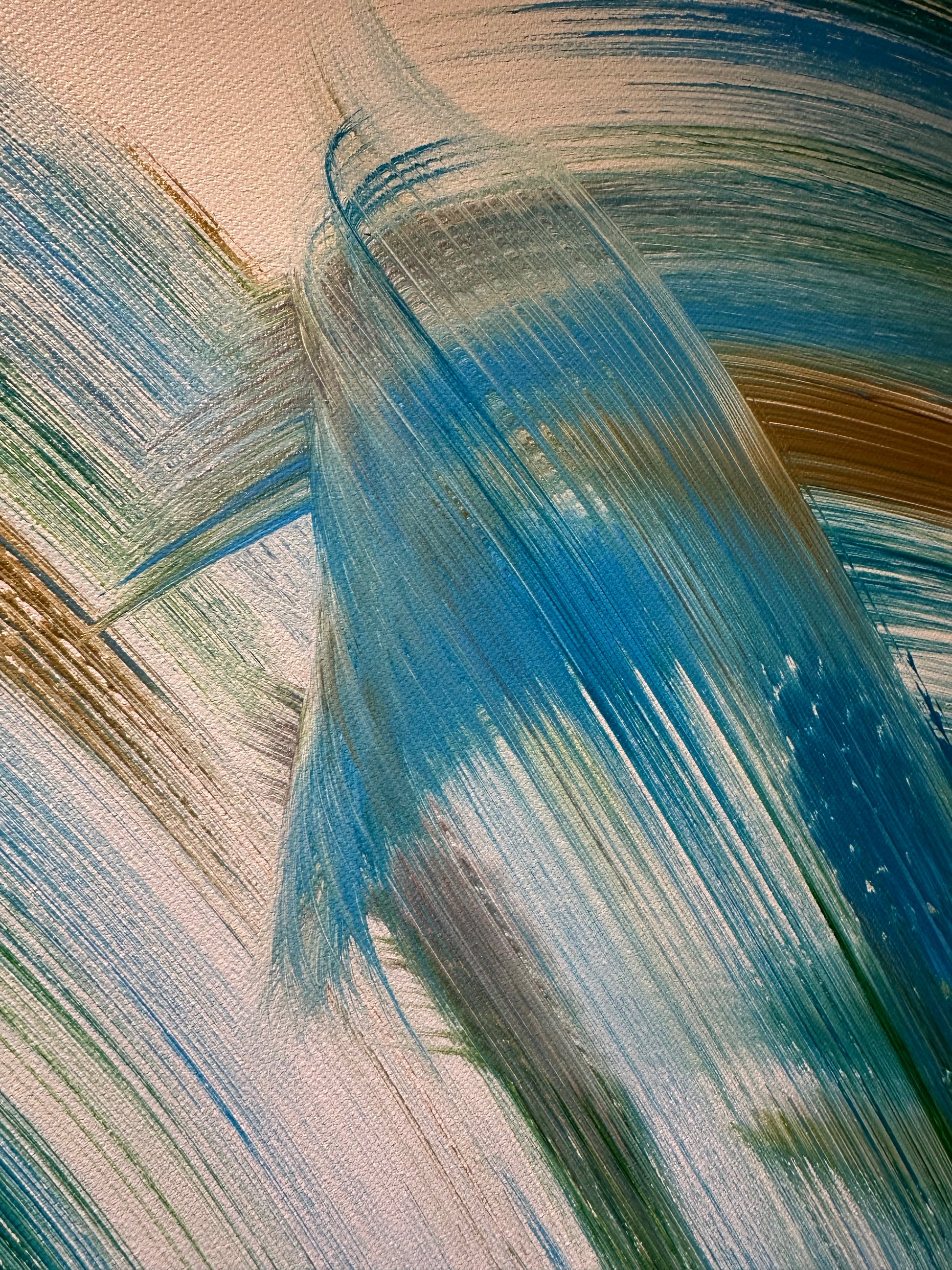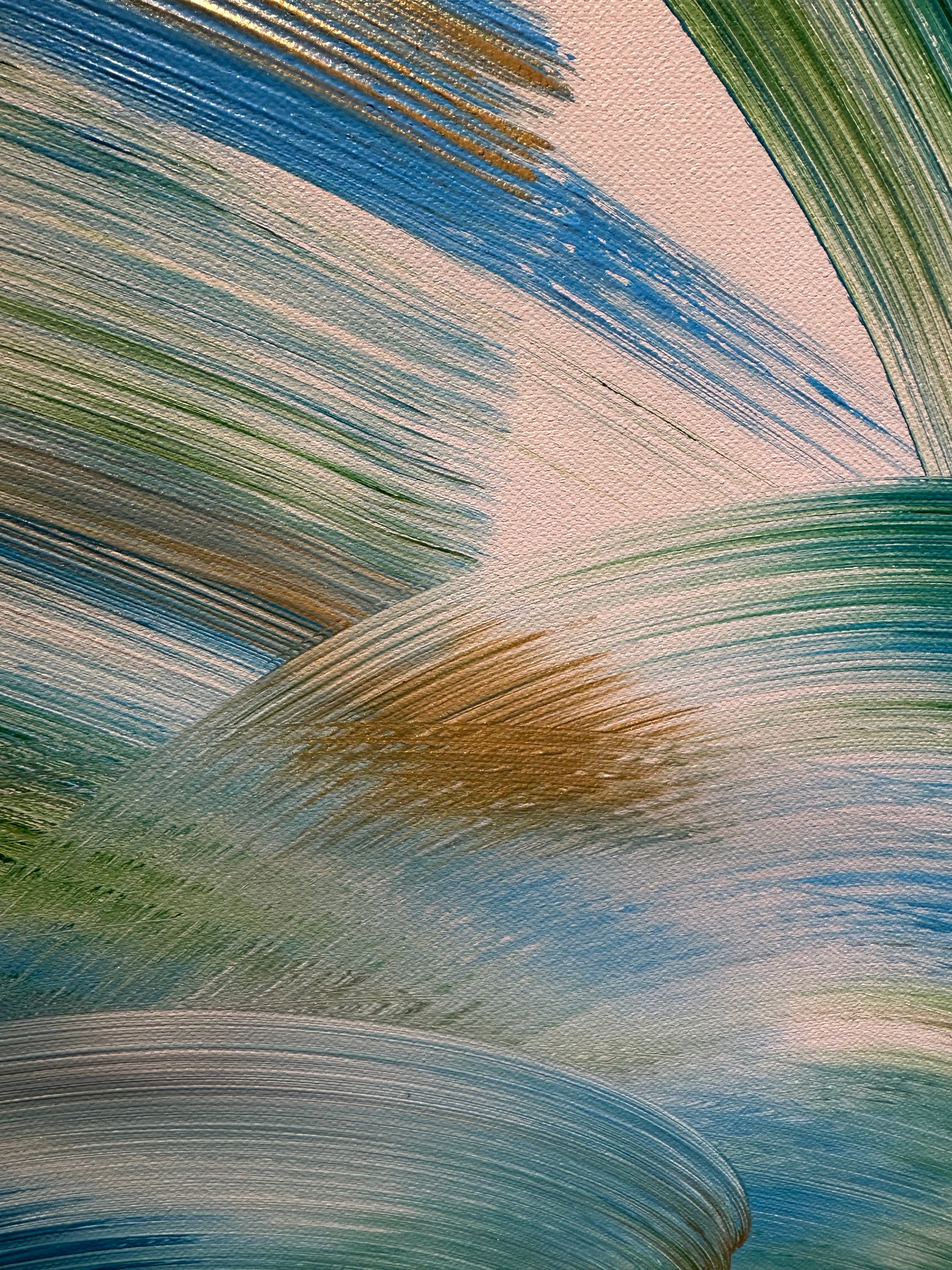 Ce tableau évoque la fluidité et la sérénité d’une brise marine caressant les vagues. Les teintes apaisantes de bleu et de vert se mêlent avec délicatesse, créant une impression de mouvement et de liberté. Légèrement abstraite, l’œuvre invite à un voyage introspectif, rappelant la mer, le ciel et l’immensité. Une pièce idéale pour insuffler une atmosphère calme et vivifiante dans n’importe quel espace.